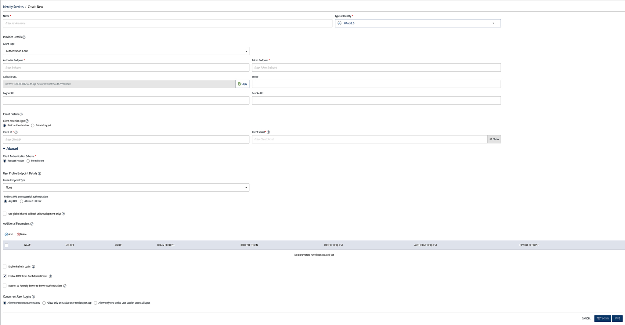 In the Callback URL text box, the system displays the default URL generated by an identity service. You need to configure the callback URL details on the authorization server against your app. You cannot modify these details.