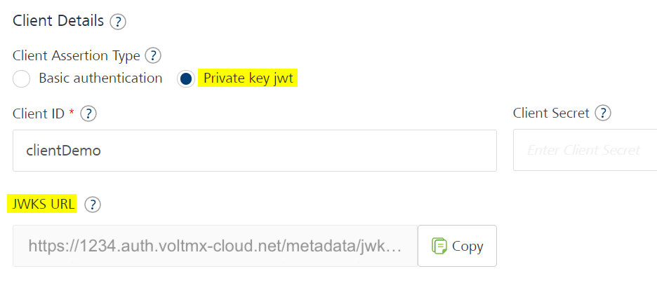 Under Client Assertion Type, select Basic authentication or Private key jwt. Based on your selection, configure the following parameters.