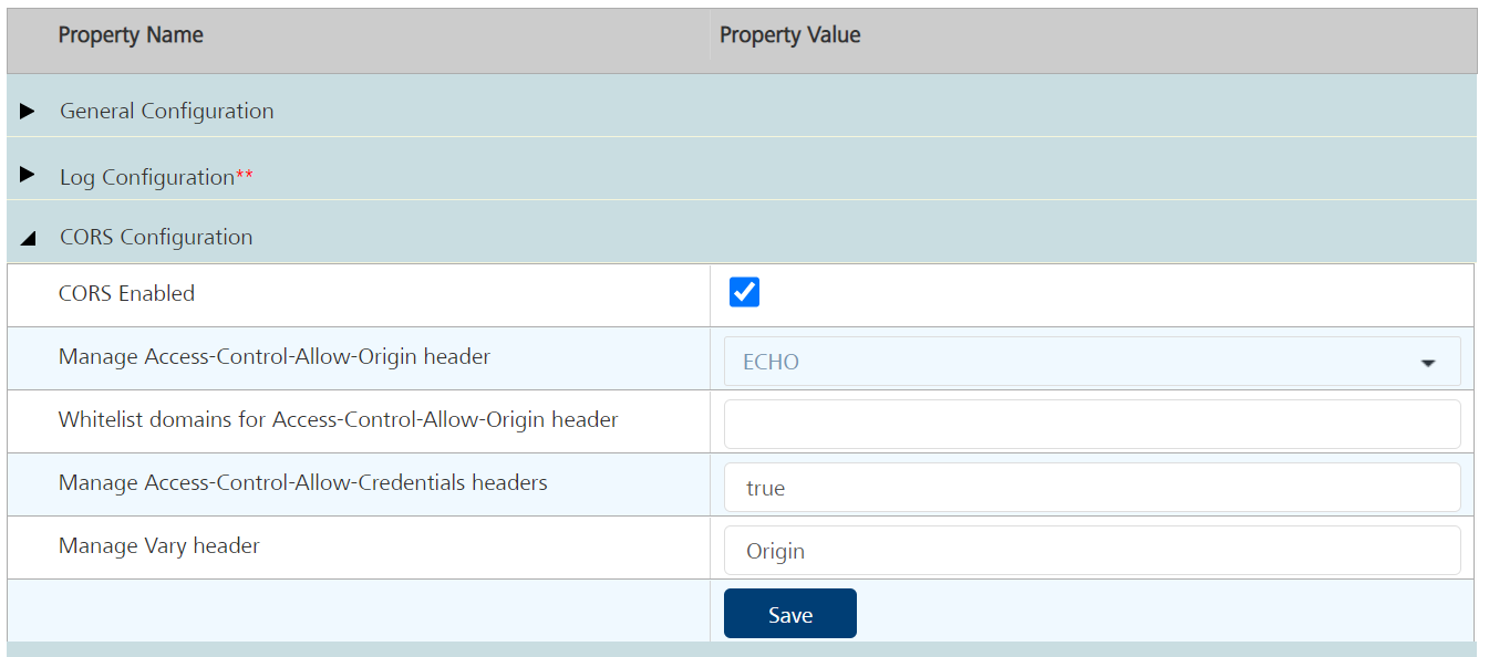 - Navigate to Settings → Runtime Configuration → CORS Configuration.