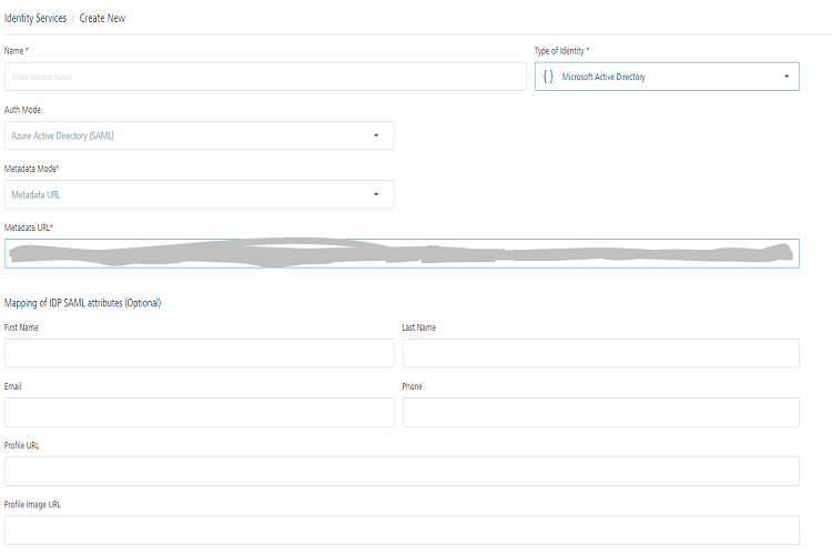 Use the metadata URL that you collected from the identity provider to create the identity service in Volt MX Foundry.