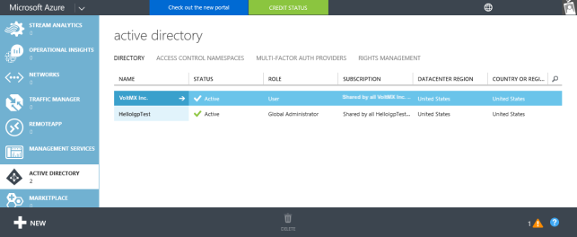 If you have not created an Azure AD directory, you can add an Azure AD directory in the Azure Management Portal. Select the Active Directory extension on the left and click Add.