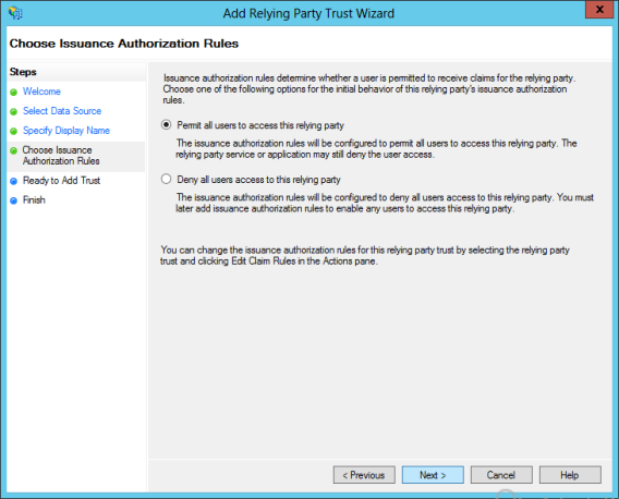 Select the Permit all users to access this relying party if that option is not already selected, and click Next.