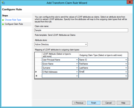 Click Add Rule. The Add Transform Claim Rule Wizard dialog appears.
