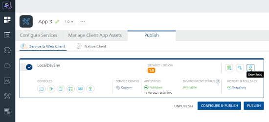 - Publish the app to an environment. The system generates the service provider’s metadata for your identity provider.