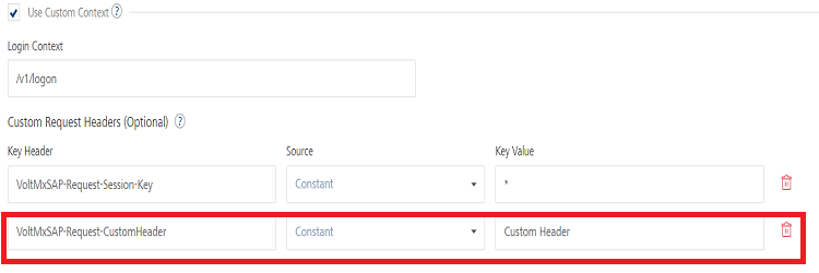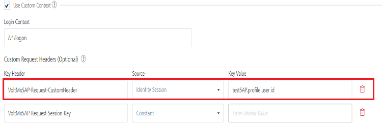 The value field in the configuration will be disabled. When the client tries to login, the request must contain the header “VoltMXSAP-Request-CustomHeader”, else the header is not sent as a request header to SAP.