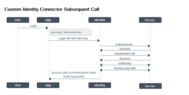 The application invokes the Login API along with the stored MFA key, and sends the details to the Identity service.