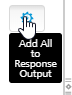 A new row is created automatically along with the JSON Path for the selected node in the Response Output tab. > Note: The Response Output tab appears if you have clicked the Create response button from the Request Input tab.> Important: If you have selected the Path Expression as JSON Path, in the Response Output tab, the Add All to Response Output cogwheel is displayed. You can generate JSON Path for the entire response by clicking the Add All to Response Output button.
