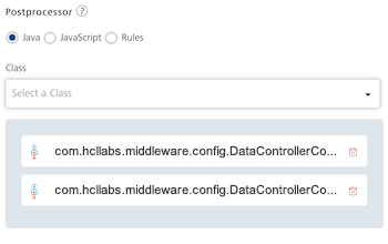 Select Java, and from the Class list, select a postprocessor class. You can select one or more classes.