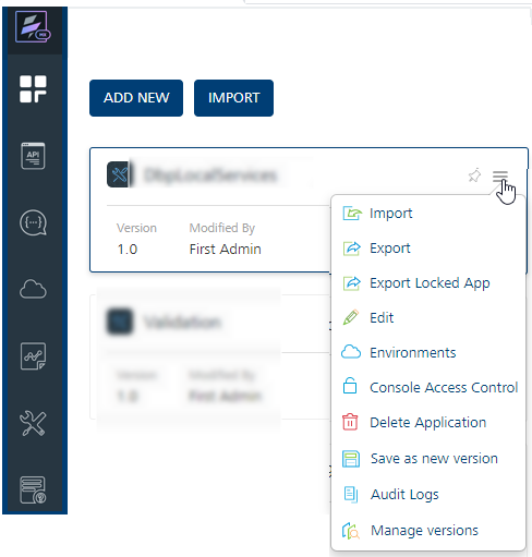 If you have imported a locked app with the Owner role, the Export Locked App feature is disabled for that app.
