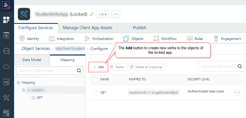 Note: From V9SP4, you can add verbs to the locked apps.