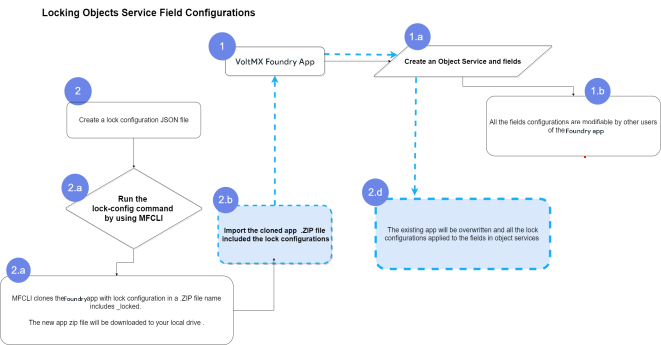 The MFCLI provides two new commands lock-config (to lock fields) and unlock-config (to unlock fields). The lock-config command must always be attached with a supportive JSON configuration file, which includes configurations/rules/conditions to lock fields of Objects services.