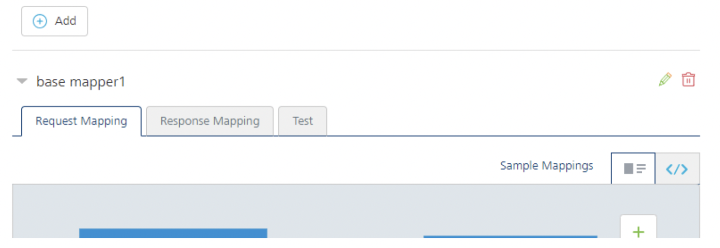 - In the Mapping tab, click the object > verb you want to view. By default, base mapper1 is created.