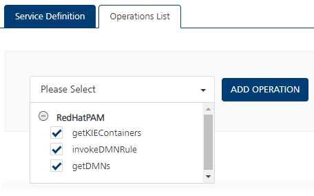• From the ADD OPERATION list, expand the RedHatPAM and select the check boxes for the available operations.