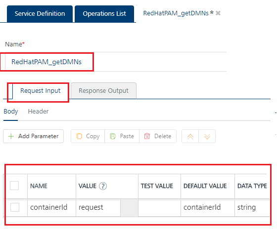 Important: Do not edit these parameter names under the NAME column for request and response.