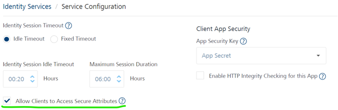 - The “Allow Clients to Access Secure Attributes” should be marked as true for working of this API.