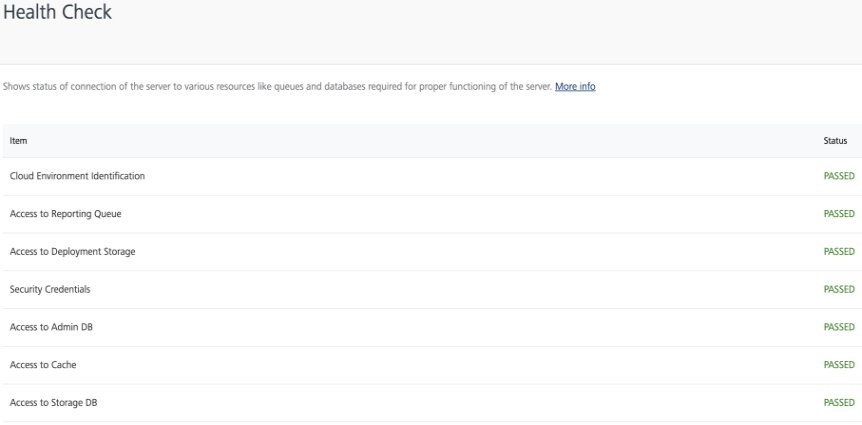 Note: It may take up to 5 minutes for the healthcheck to reflect the cache status. If you are still unable to find the particular entry in the Health Check page, try clearing the healthcheck cache using the following URL: