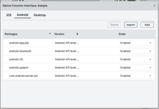 To enable Native Function APIs Volt MX Iris for Android platform, follow these steps:
