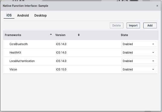 To enable Native Function APIs Volt MX Iris for iOS platform, follow these steps: