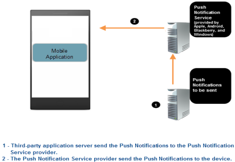 - The third-party application server uses the unique identifier (sent by the application ) in sending the Push Notifications to the Push Notification Service provider of the device.