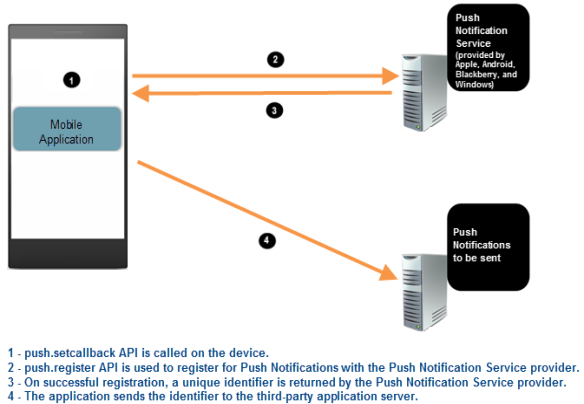 For Push Notifications to work, the application and the device must first register with the corresponding Push Notification Service provider of the device os.