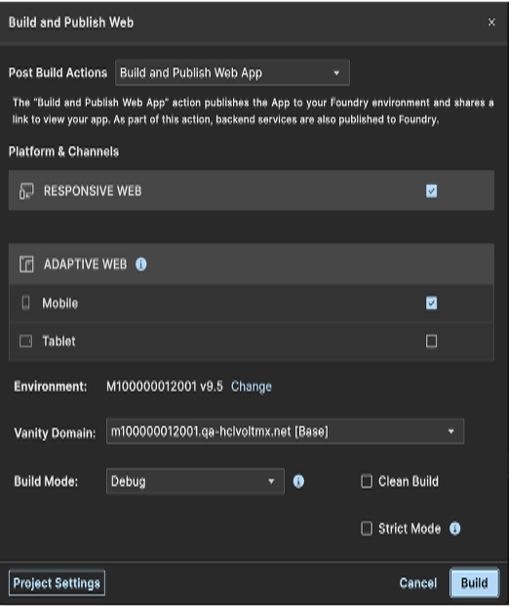 Select the required Platforms and Channels for which you want to build and publish your web app.