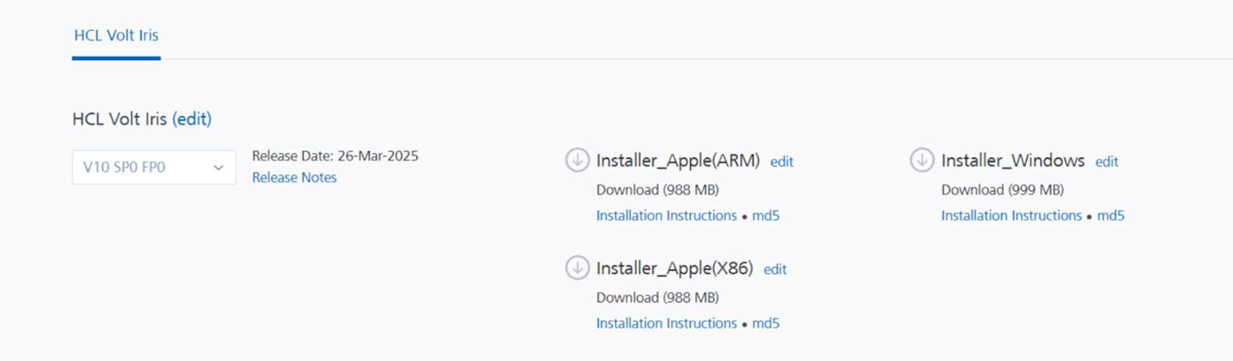 Under HCL Volt Iris, two flavors of installers are available for macOS, namely “Installer_Apple (ARM)” for Apple Silicon and “Installer_Apple (x86)” for Apple x86 (Intel) machines. Click the Download button for the installer of choice. The installer is downloaded as a zip file to your computer.