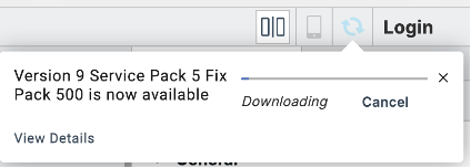 Note: The update dialog box only displays the latest available version (Fix Pack, Service Pack, or major release). If you want to download a specific intermediate version, refer Manual Update Process.