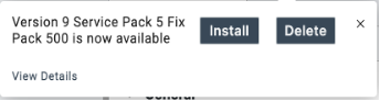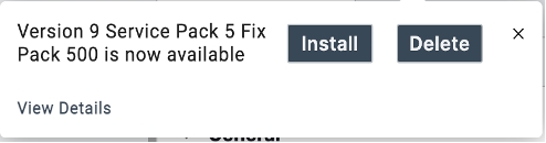 A download Fix Pack is pending install. Install the Fix Pack or delete it to continuemessage with the Install and Delete