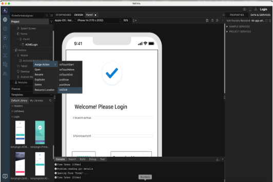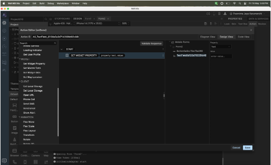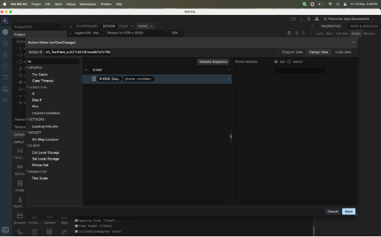 Select Call Action from the action library to build the desired action sequence for the On-Click event.