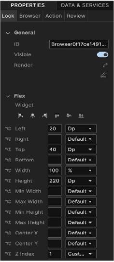 - For the iOS platform, use a Browser widget as a screen-level widget and move other widgets to the header or footer. Otherwise, dual scrolling bars may be displayed.