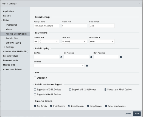 Introduced a new feature for Android application build where you can generate and sign an Android application in the release mode with a keystore certificate.