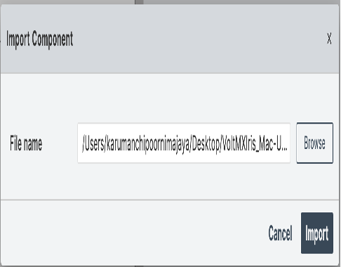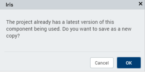 - When you import an older version of an existing component, Volt MX Iris displays a message for permission to save the imported component as a new copy of the component. Click OK to import the component as a new copy. Click Cancel to stop the import process.