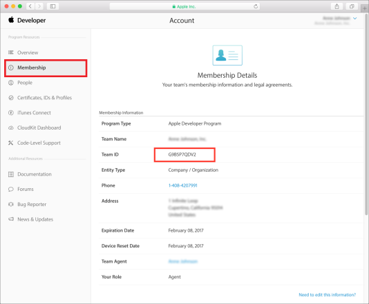 /Applicationsdirectory instead of the/Developersdirectory. To change the directory, use the command.xcode-select. - For iOS, make sure to obtain a 10-digit development team identifier from Apple. The Team ID can be found in the Membership Details of your Apple Developer account.