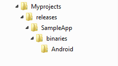 If the app is built for Android, you can expect the folder to have the following structure (unless otherwise defined in the binaries section of the HeadlessBuild.properties file).