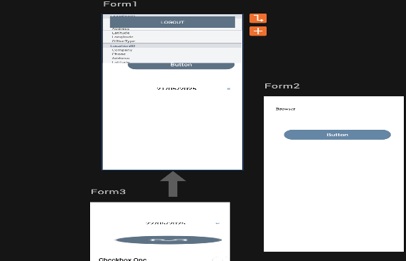 . A new form, named Form3 by default, appears with a navigation link connecting to Form2. -