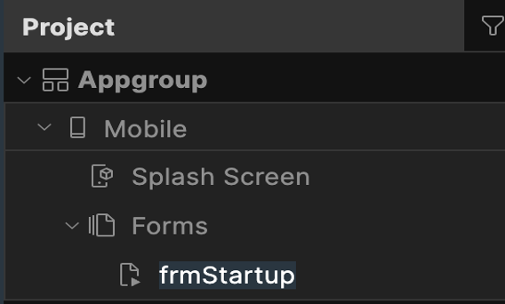 If a form is associated to an App Group, the name of the App Group is displayed by default with the form name in Storyboard view. Here, Form1 is associated to AppGroup1.