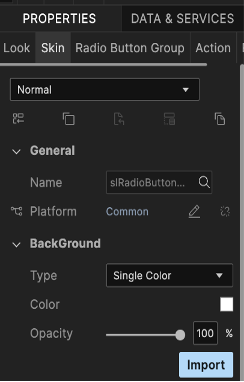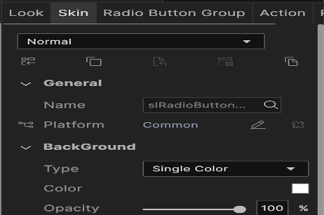 - Select the state of the widget that you want the skin to apply to, such as Normal or Focus.