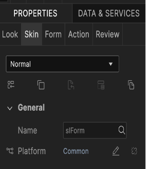 In the Properties Editor on the Skin tab, in the General section, click the Fork icon to fork the skin for a selected platform. If the option is selected, the fork icon turns blue. The platform for which the skin is forked also appears at the platform.