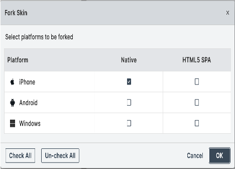 Select the platforms to fork and click OK. The skin will be forked for selected platforms.