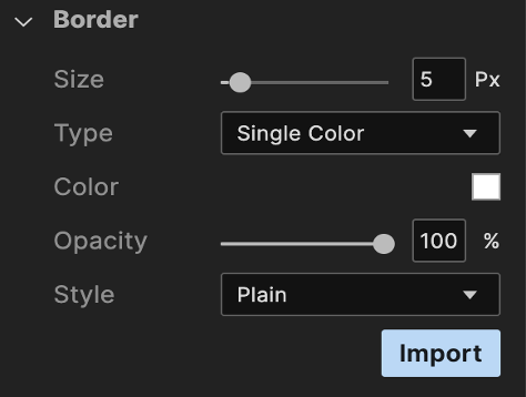 The Border properties on the Skins tab become activated when the border width is greater than 0. Upon setting the border size to 1 or greater, the other border properties become editable. For the border color you can pick a single color or a multi-step gradient. And you can change its opacity.