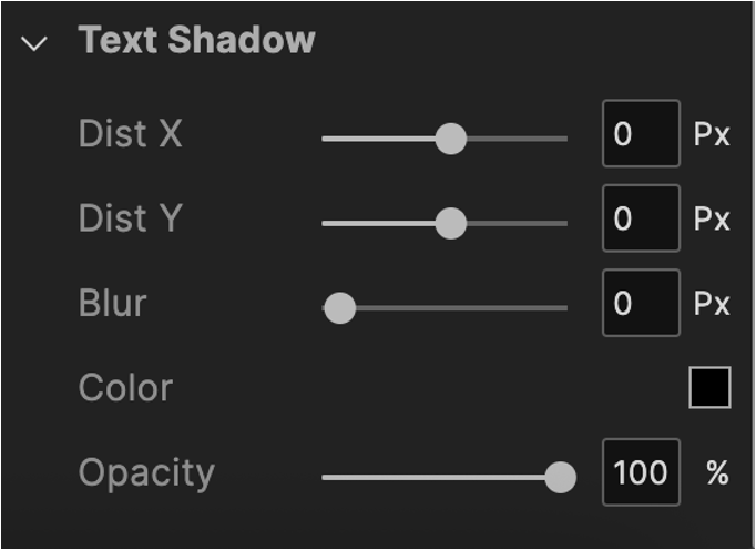 You can modify the following text shadow properties of a widget: