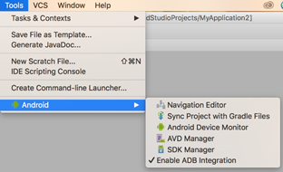 In the case where you would like to set up and use a GUI version of the AVD Manager (for an Android Emulator) and SDK Manager (to download missing SDK components. Support and Google library components and emulator images), you will also need: