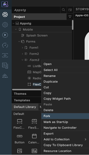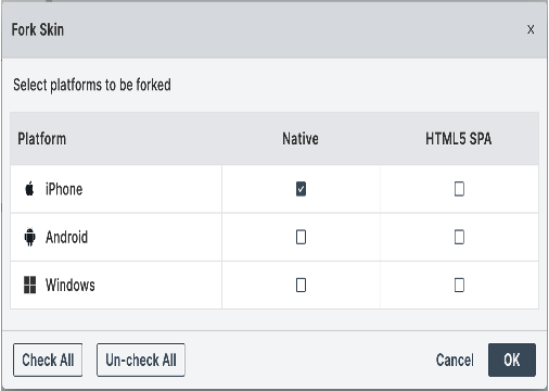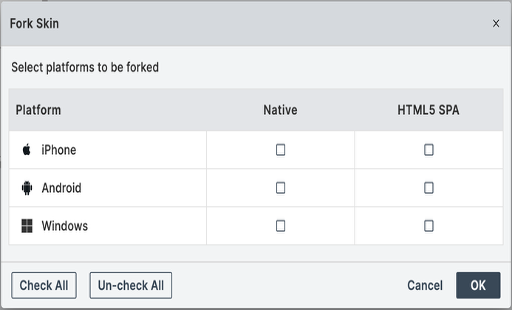 Expand Forms, click the context menu arrow of the form you want to fork, and then click Fork.The Fork Platforms dialog box displays.