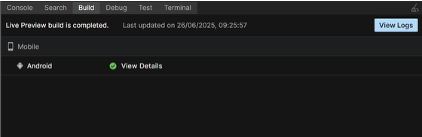 - From the Build tab, click View logs to open the build logs for the build service on your system.
