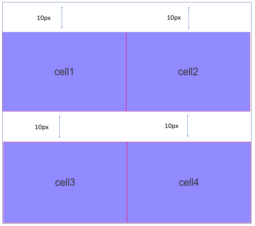 - GutterY: The GutterY property provides vertical spacing (only on the top of a widget) between the child widgets of the Responsive Container. The value for the GutterY property must be provided in px, dp, and % units. For example, if you provide a GutterY value of 10 px, the spacing is applied as follows: