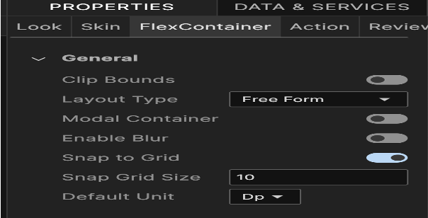 To support the Responsive Grid Layout, a new Layout Type, Responsive Grid, has been added to the Container widgets such as, Flex Form, FlexContainer, and FlexScrollContainer widgets.