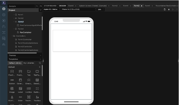 - From the library, drag the FlexScrollContainer widget onto frmHome form on the canvas.