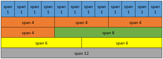 Note: If the value of Span + Offset is more than 12, the next child widget that you add is wrapped and appears in a row below the current row.
