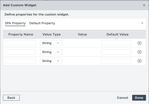 - In the new window that appears customize the properties of the custom widget as per your requirement, and then click Done.