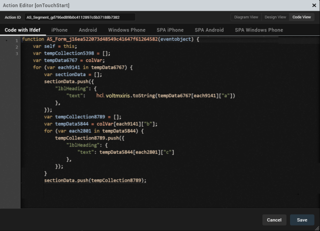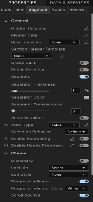 Segment properties specify properties that are available on any platform supported by Volt MX Iris, and assign platform-specific properties.